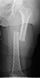 Femoral shaft fractures can also occur in individuals who have had previous orthopaedic surgery, such as hip replacement. In this instance, there is already a device occupying the femoral canal (the hip stem). Plates and screws are one possible treatment in this situation where a rod cannot be placed.