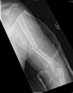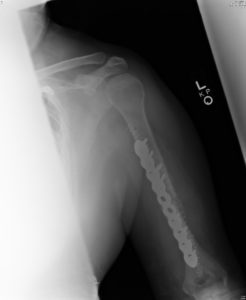 Humeral shaft fractures can be treated with bracing in many circumstances. The brace will help to hold fracture alignment while allowing function of the arm to resume. When alignment cannot be adequately held by the brace, or when a faster return to weight bearing on the arm is necessary, surgery may be performed. Surgery typically entails placing a plate and screws or a rod and screws to fix the fracture. Healing time and return to full activity are often less with surgery than with nonsurgical treatment.